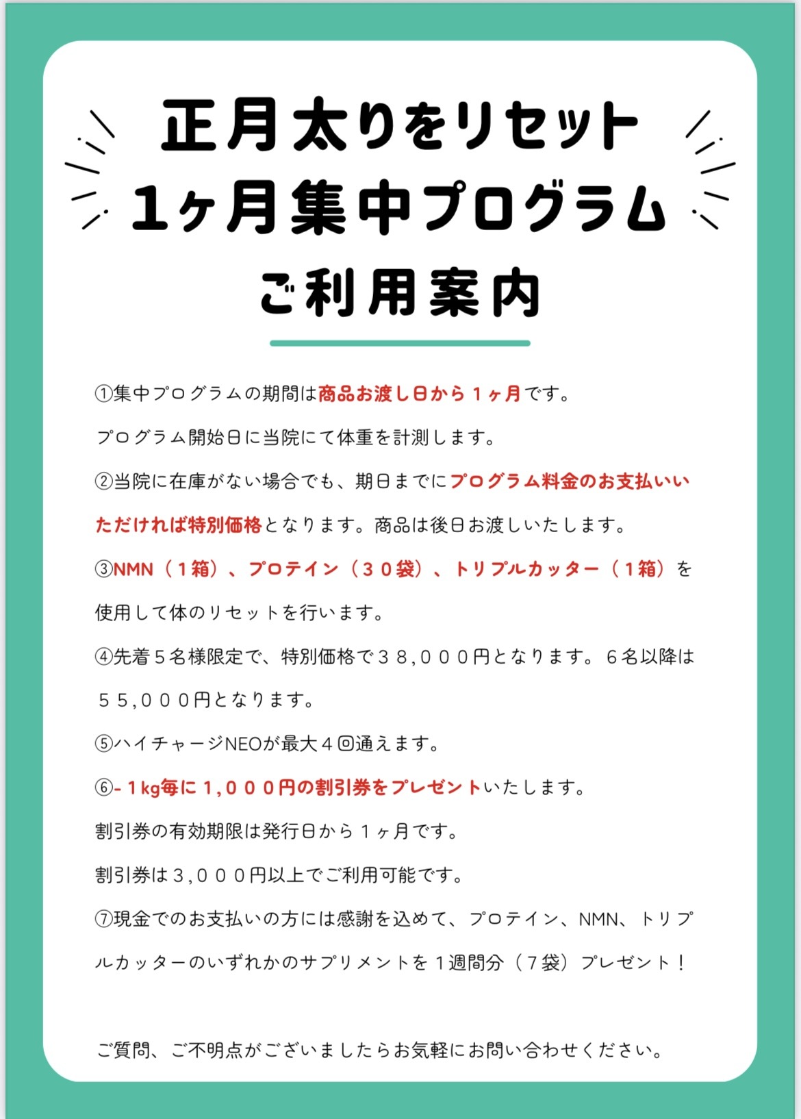 ✨ 体重が1kg落ちるごとに1,000円分の割引券をプレゼント!